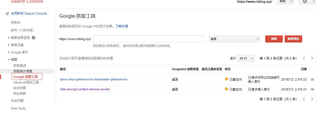 利用Google抓取工具您可以测试Google会如何抓取或呈现您的网站上某个网址。 你可以使用“Google抓取方式” 了解googlebot是否访问您网站上的某个网页,会如何呈现该网页,以及是否已被禁止访问任何网页资源, 这个工具会模拟Google的常规抓取和呈现流程中所执行的抓取和呈现操作,有助于调试你网站上出现的抓取问题,如下图所示: