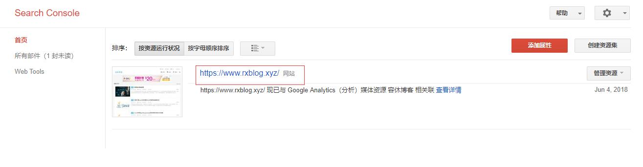 2.添加属性,即添加网站,将你的网站添加到Search Console;