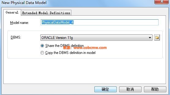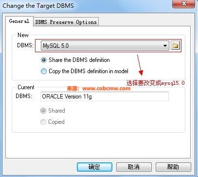 3.如上图,选择你的数据库sql文件所属数据库类型和版本,然后点击”Share the DBMS definition”;