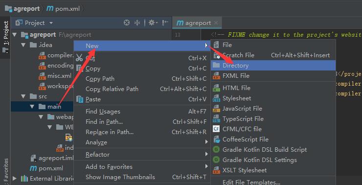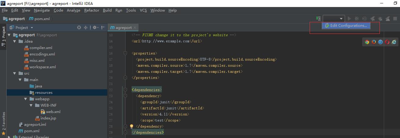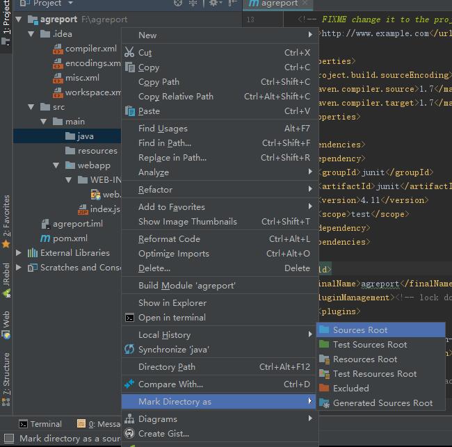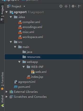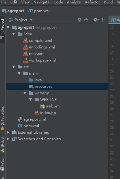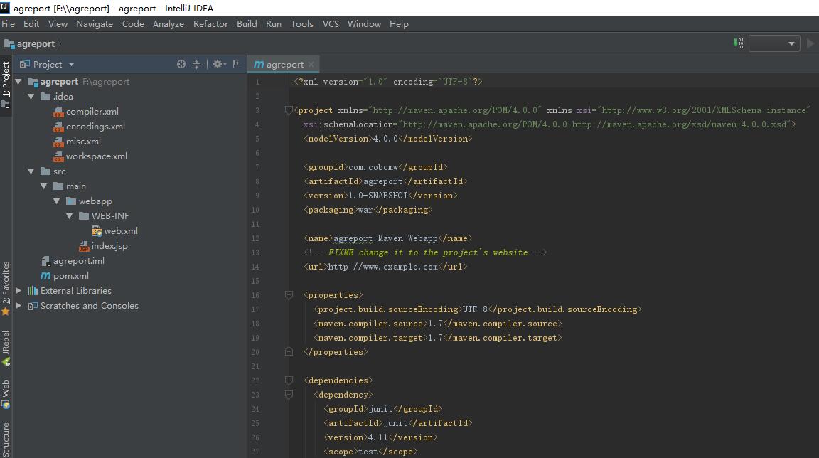 等待idea后台下载完依赖之后,这样我们就新建了一个名称叫agreport的java maven web工程。