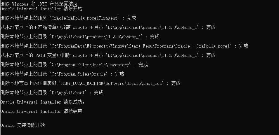 卸载完成会自动退出,相关的Oracle服务和目录都会自动删除了。