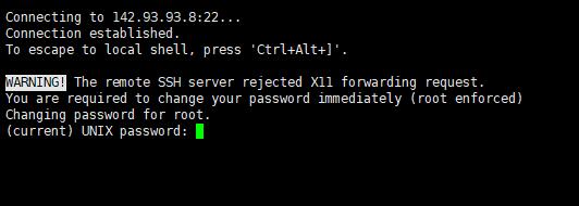 第一次连接之后会让你修改密码,先输入邮件中发给你的原始密码,如下图: