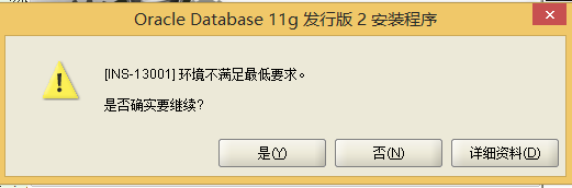 在windows8环境下安装oracle 11g提示错误:[INS-13001] 环境不满足最低要求: