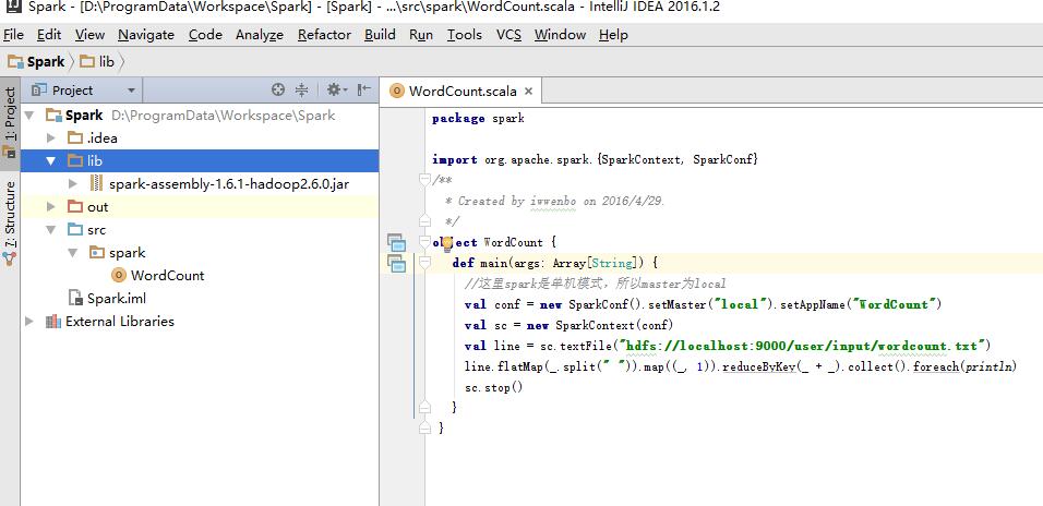 val conf = new SparkConf().setMaster("local").setAppName("WordCount")