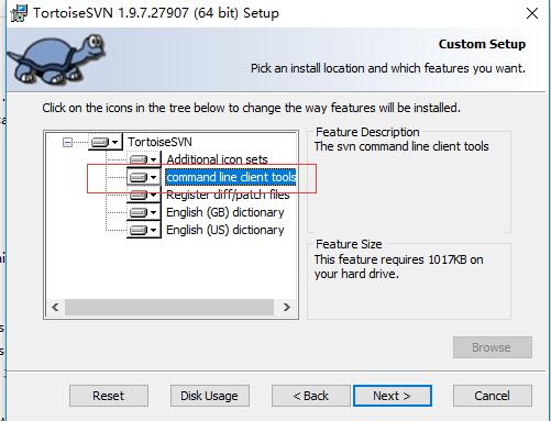 首先下载TortoiseSVN-1.9.6.27867-x64-svn-1.9.6.msi,安装时记得勾选command line,默认是不安装此项的;