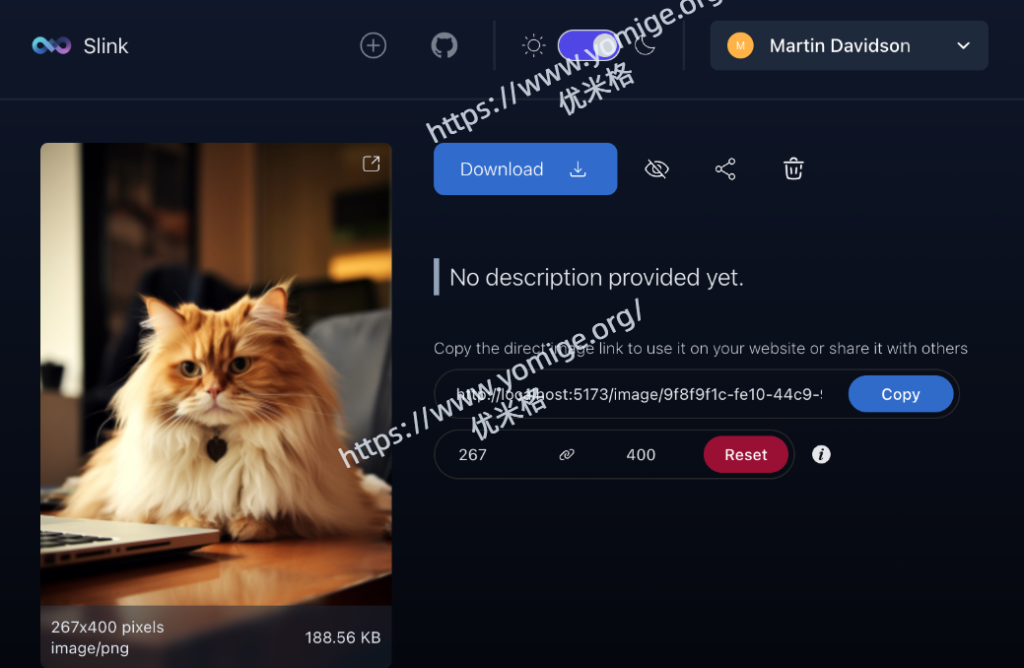 - 分享链接: 用户可以分享上传图像的链接,并自定义图像大小