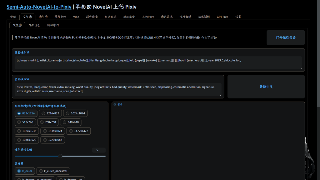 Github:https://github.com/zhulinyv/Semi-Auto-NovelAI-to-Pixiv